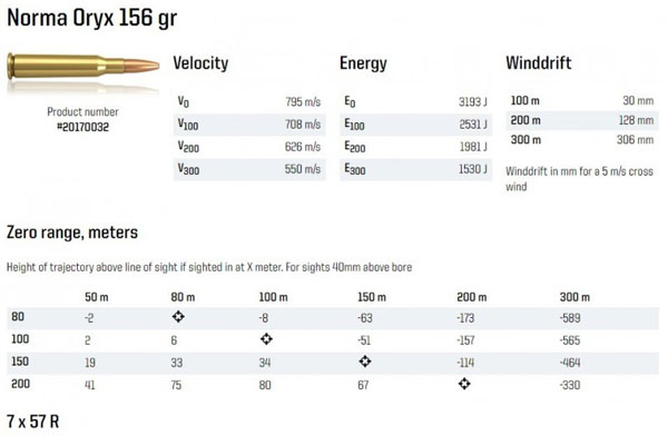 NORMA 7X57R ORYX 165gr 10,1g (20)