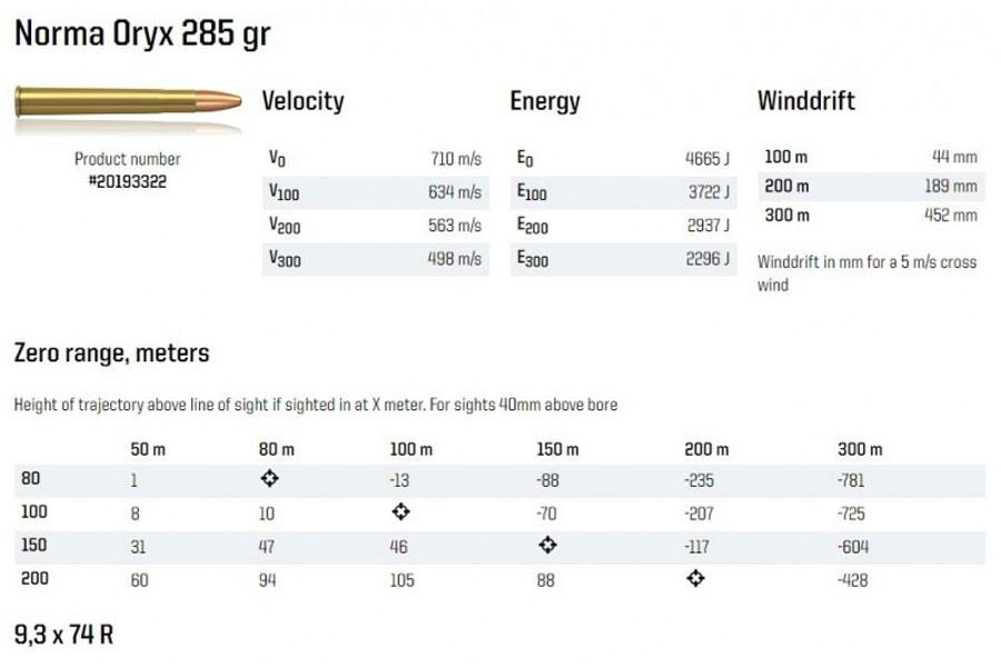 NORMA CTG 9.3X74R ORYX 285gr 18,5g (20)