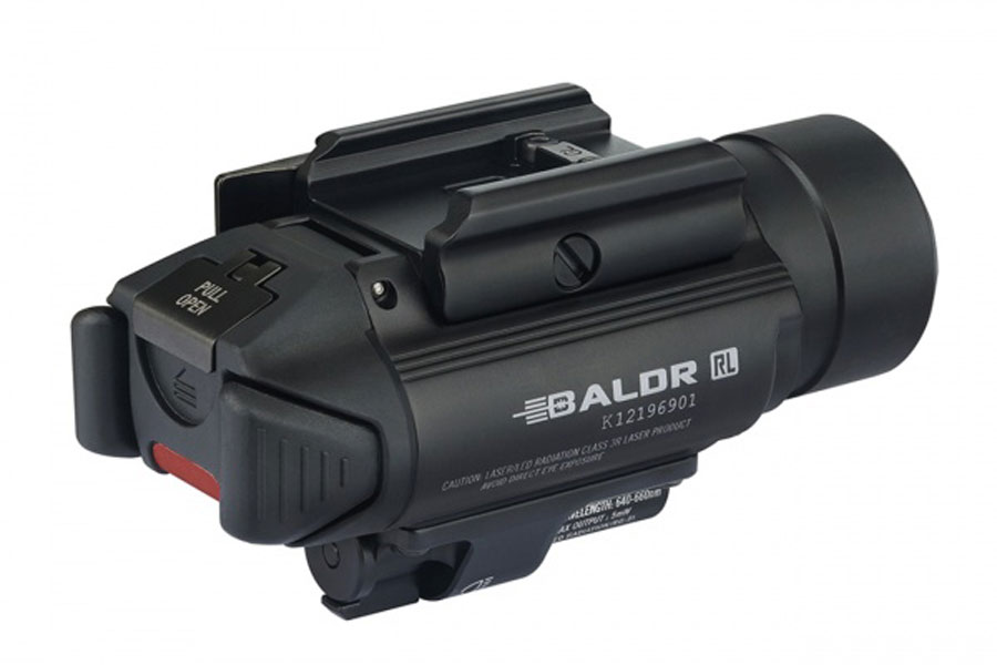 The BALDR RL is a professional light tool with a red laser sight and a white LED flashlight for mounting on Picatinny (MIL-STD-1913) or Glock rail mounted equipment. Powered by two CR123A batteries, the BALDR RL has a maximum output of 1120 lumens. The neutral white LED lens and TIR make for a robust search light. The BALDR RL’s central beam is strong and concentrated, also soft and wide near the ground. The white LED can also be set to 300 lumens at continuous illumination. The beam emitted by the red laser is clearly visible for precise targeting. Fitted with adjustable screws. Withstands strong shock and vibration. The flashlight is easy to install and remove by pressing or loosening the side swing arm. The product body is made of aluminium alloy for extremely high strength and reliability. The BALDR RL with its optimum price is the choice for professional users. It is characterised by its ease of use, high brightness and outstanding performance.