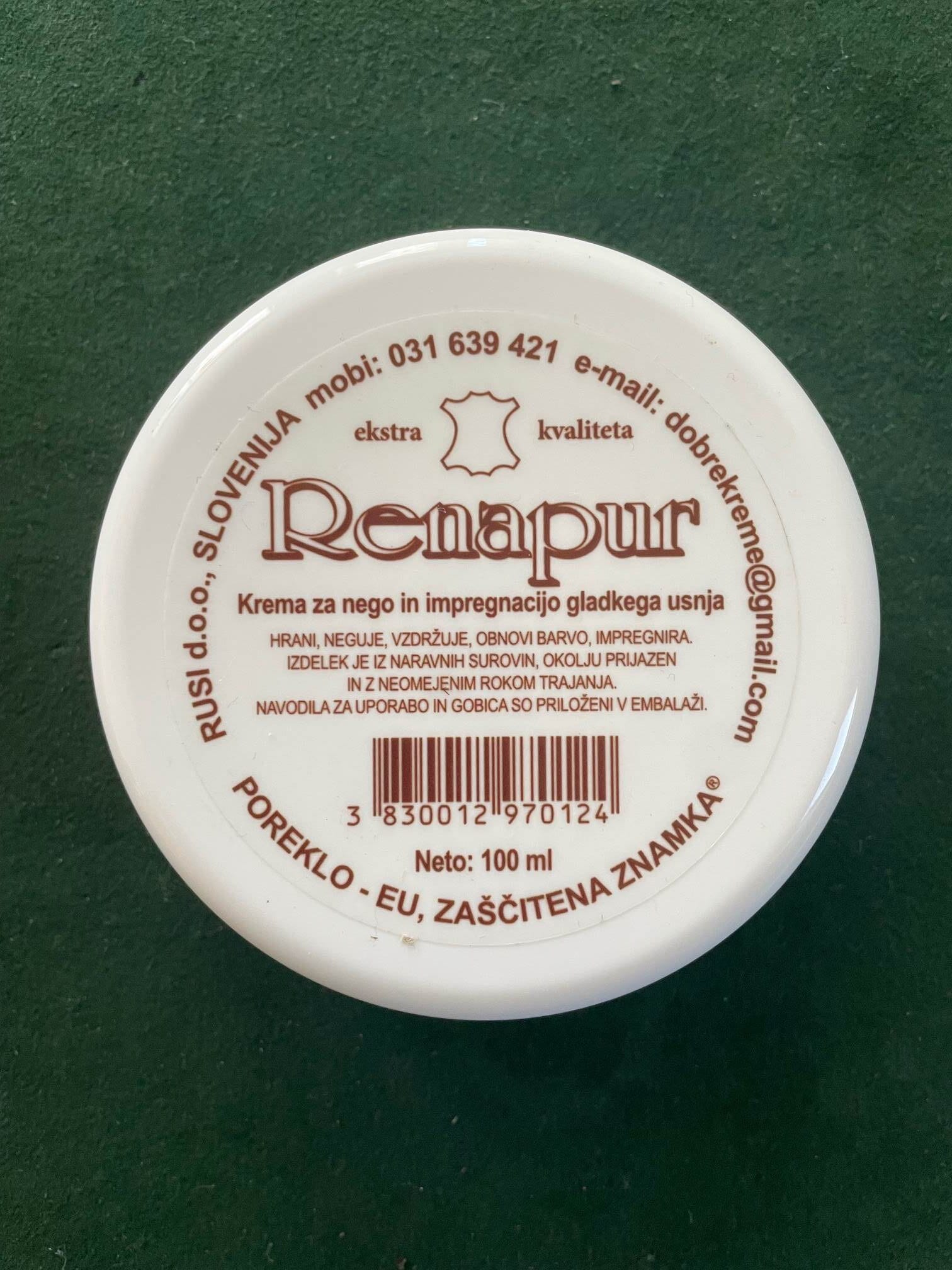 RENAPUR: is a new way to maintain and impregnate all types of leather goods or natural leathers. It is a natural product based on jojoba oil and beeswax.