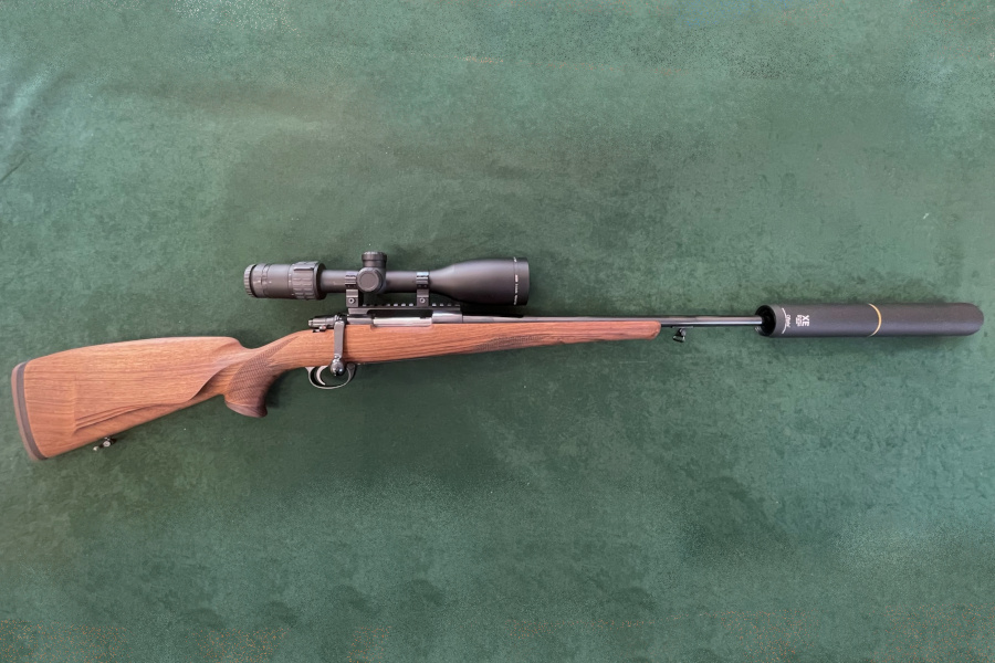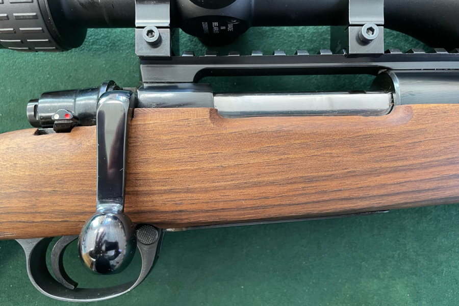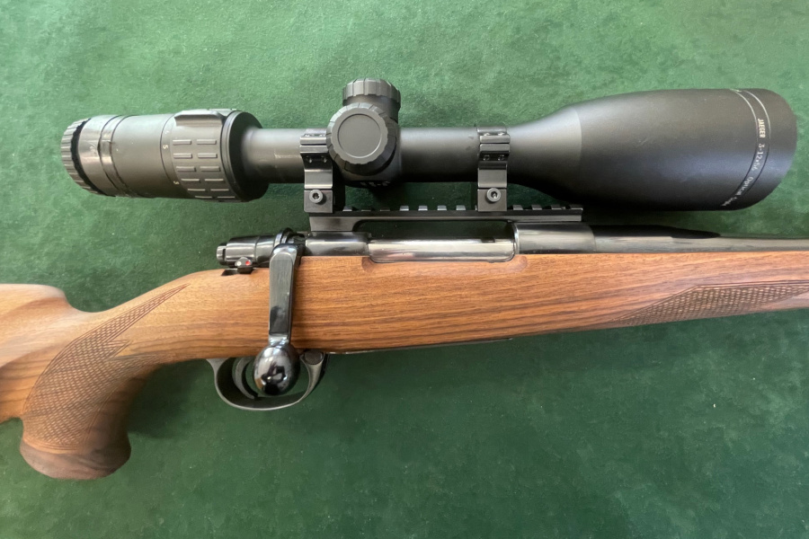 The stock is made of quality walnut wood, finished with a rubber cap and a wooden finish on the pistol grip. The stock is Bavarian with a semi-lead back. The fish skin is grained on the pistol grip and on the front part of the stock. The stock is protected with a special dark matt oil.