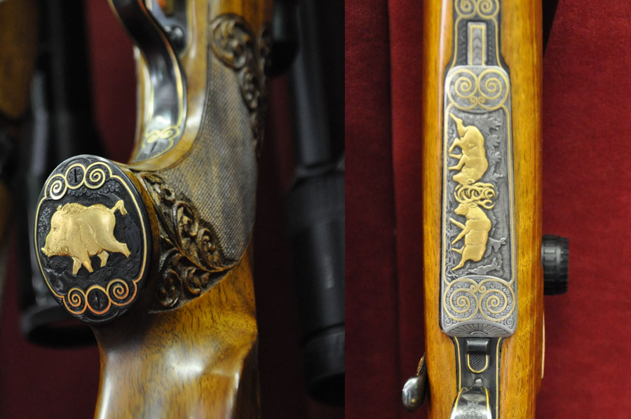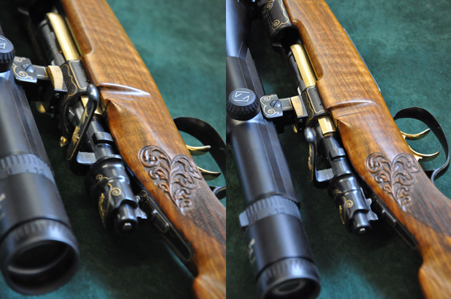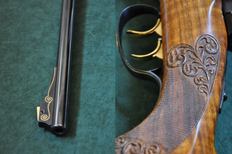 Fine fish skin with carved arabesques on the pistol grip and front part of the stock.