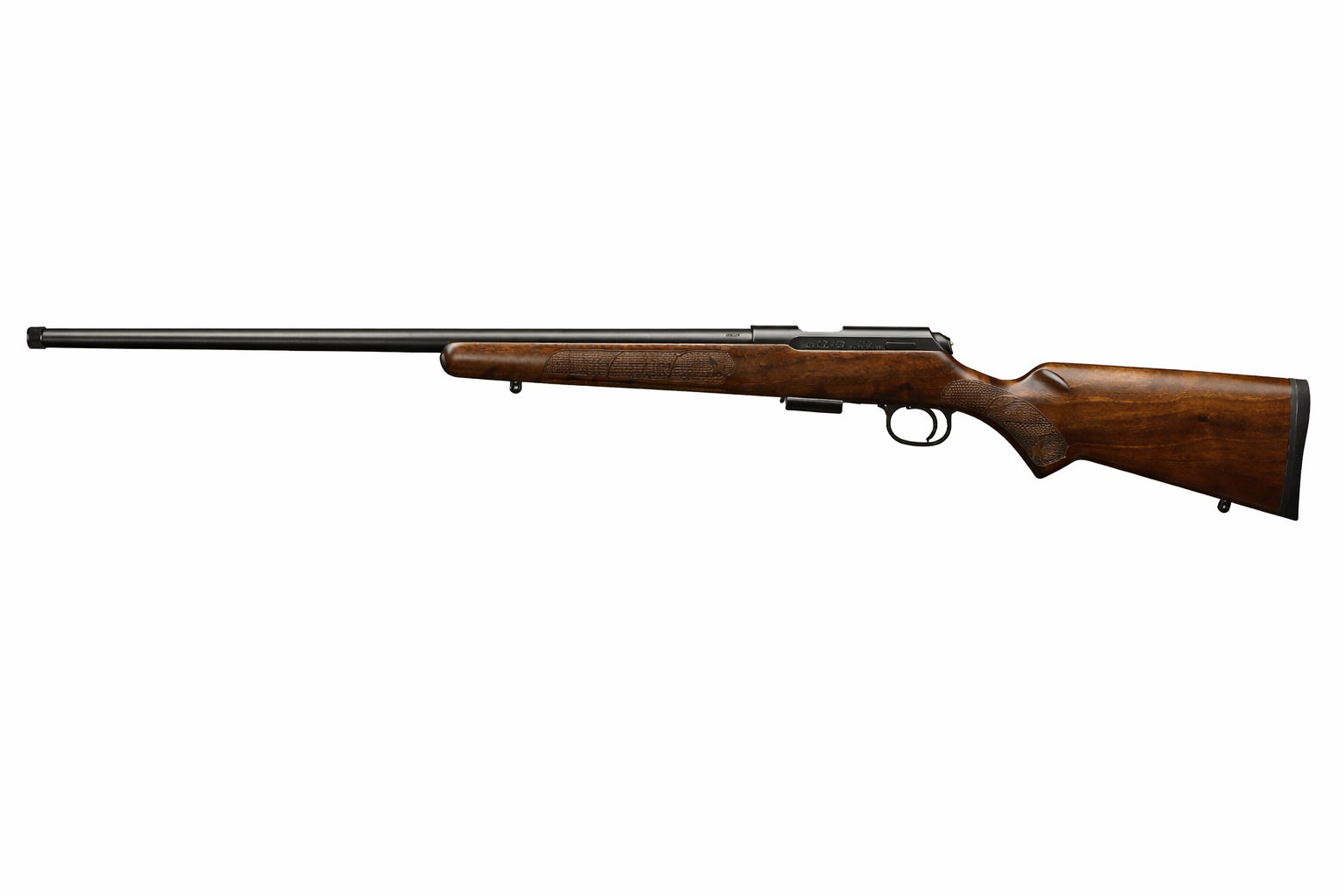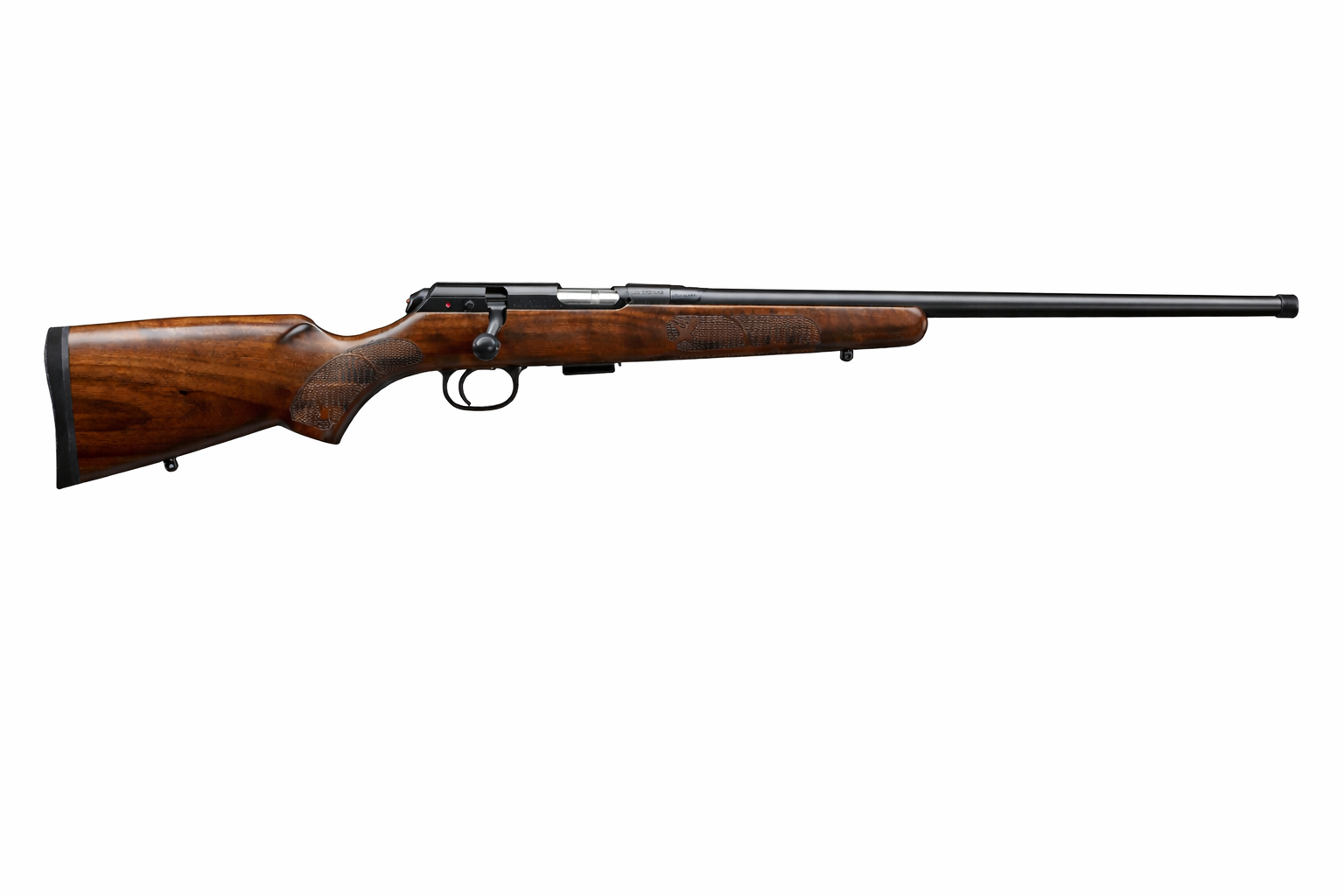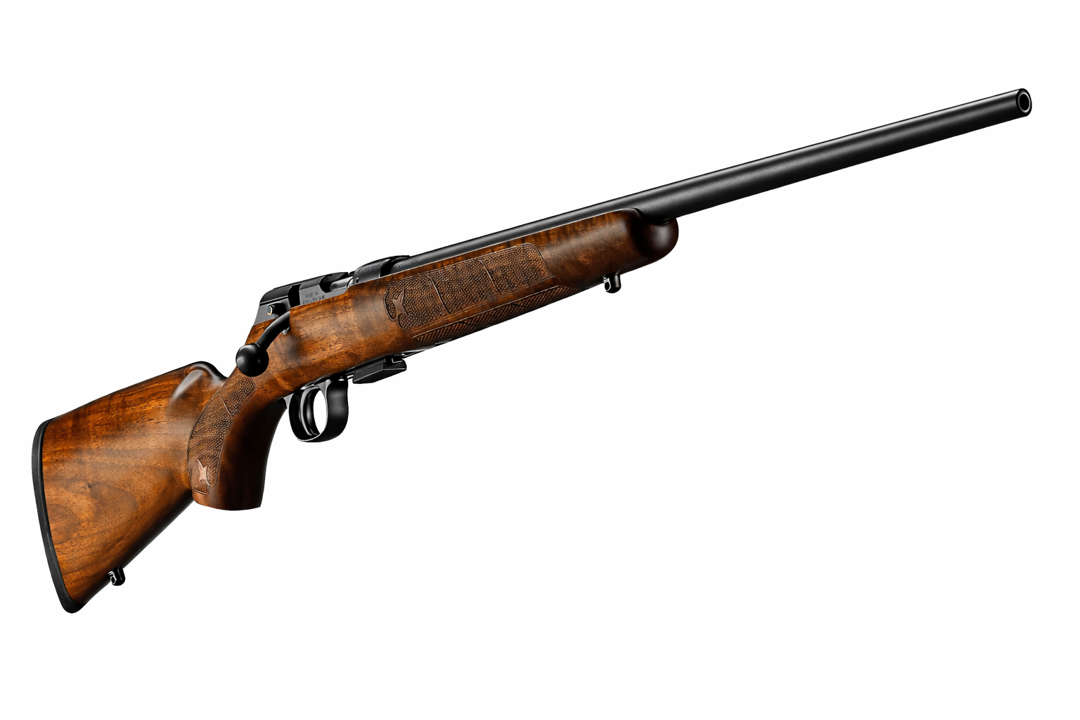 Čudovit, sodoben primer klasične ameriške malokalibrske puške za športno streljanje in lov. Lakirano kopito v ameriškem slogu je izdelano iz visokokakovostnega oreha, z natančno izdelano narebričeno površino na ročaju, ki vključuje motiv fleur-de-lis. Lahka, hladno kovana cev dolžine 630 mm je brez merkov.