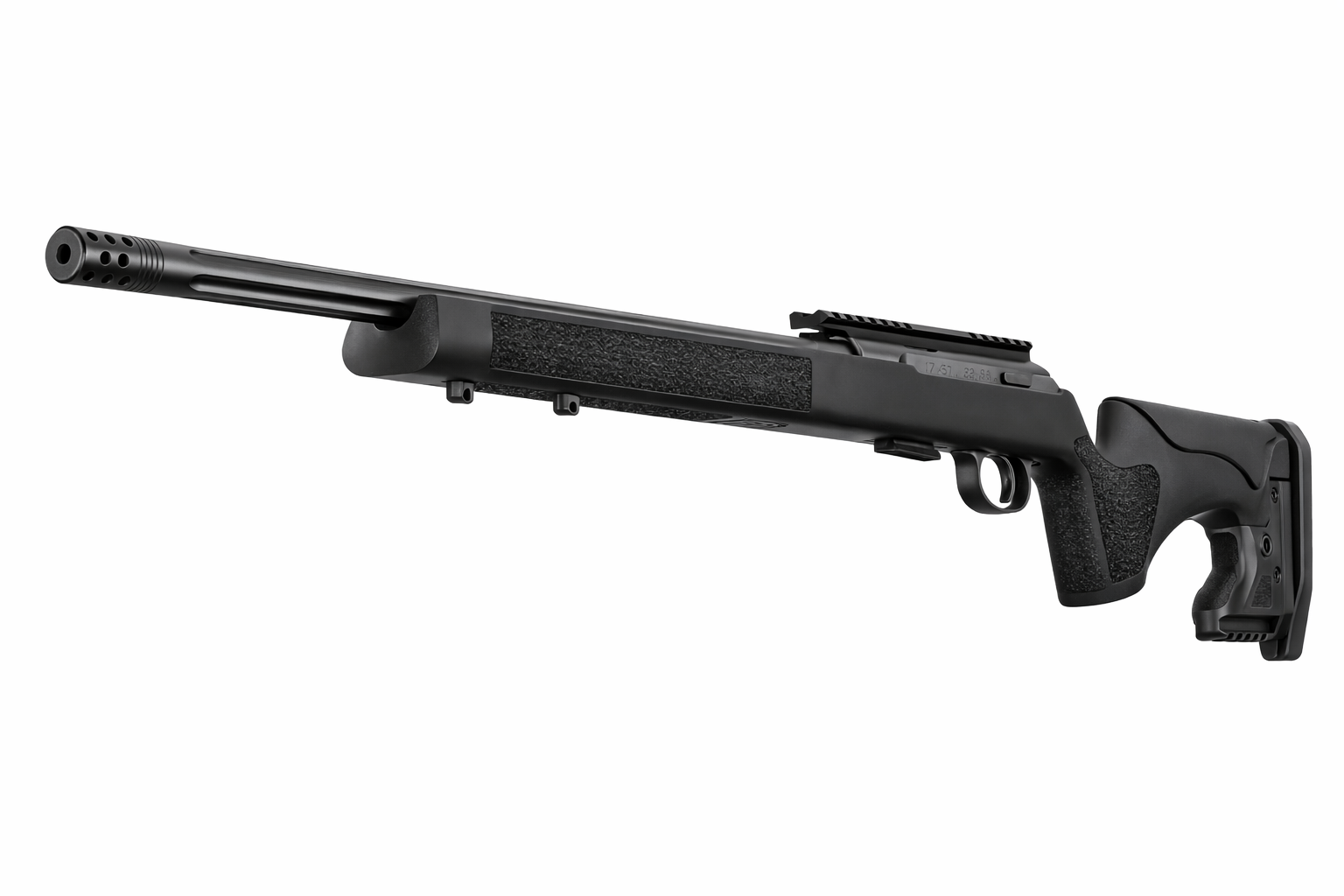 Opremljena je z 20-palčno težko, vzdolžno rebrasto (fluted) hladno kovano cevjo z MATCH ležiščem naboja ter učinkovitim cilindričnim kompenzatorjem na ustju cevi. Vse ključne lastnosti črnega kopita v tarčnem (target) slogu so nastavljive. Montažna letev Picatinny z naklonom 25 MOA omogoča enostavno nastrelitev strelnega daljnogleda.