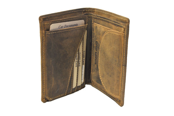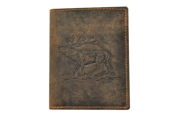 Kvalitetna usnjena ( antique usnje v rjavi barvi ) denarnica AKAH z vtisnjenim motivom jelena v ruku. Denarnica ima dva predela  za papirnati denar, predel za kovance ter dovolj mest za plačilne kartice, osebno izkaznico ipd……….  Dimenzije: širina: 10 cm, višina:12 cm.  Pakirana v lepi kartonski darilni ŠKATLI.