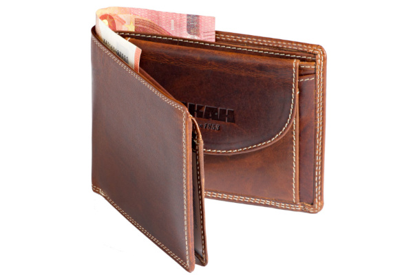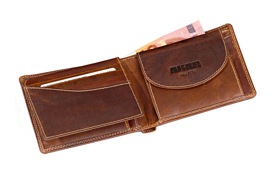 Kakovostna denarnica iz ročno voščenega, naravno zagorelega bivoljega usnja iz poslovne serije “Big Five" navdušuje s svojim elegantnim in klasičnim dizajnom.