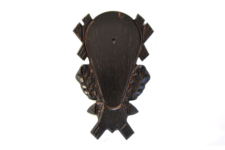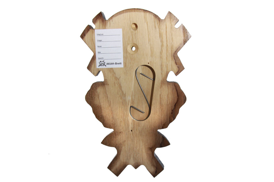 Rezljana deska za trofejo srnjaka iz hrastovega lesa, temno pajcana. Zadaj z odprtino za čeljust.