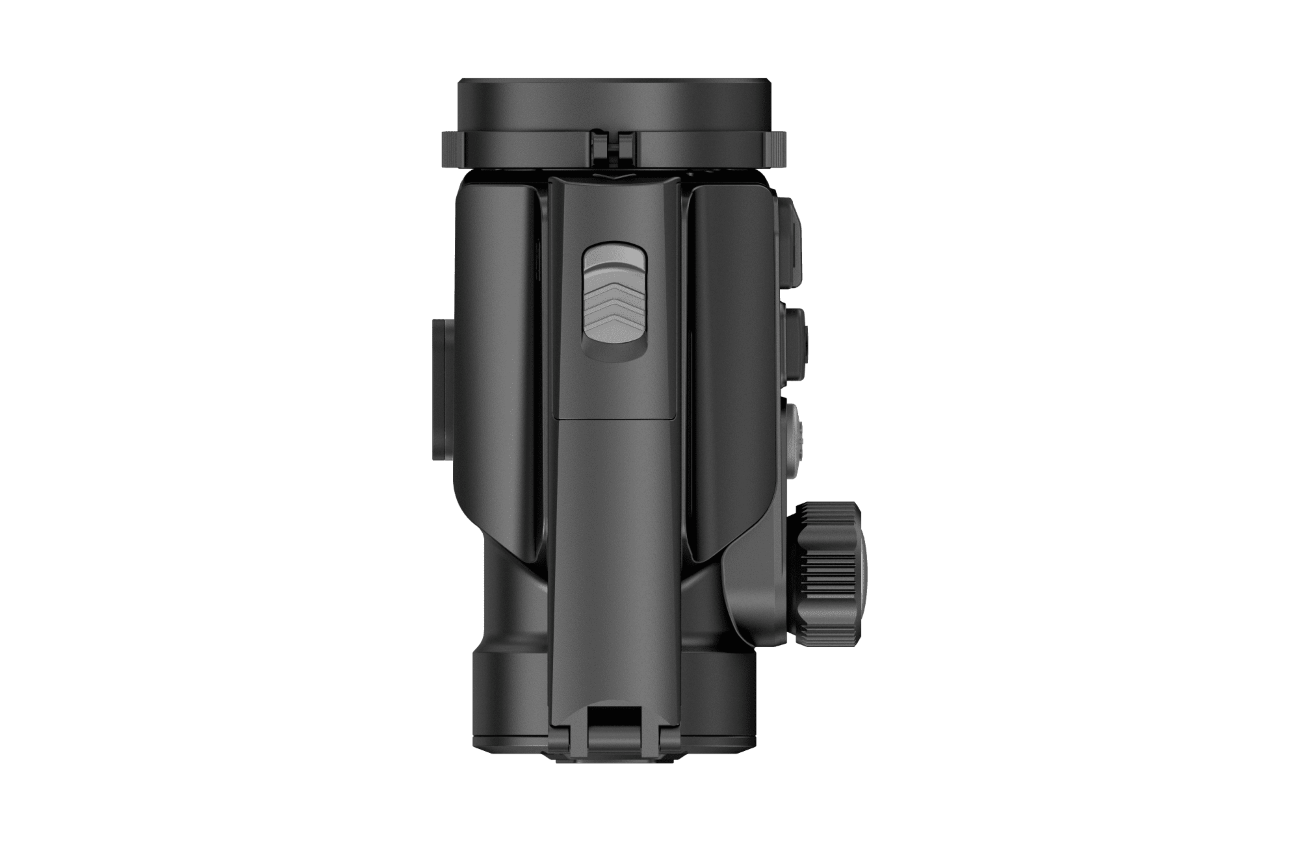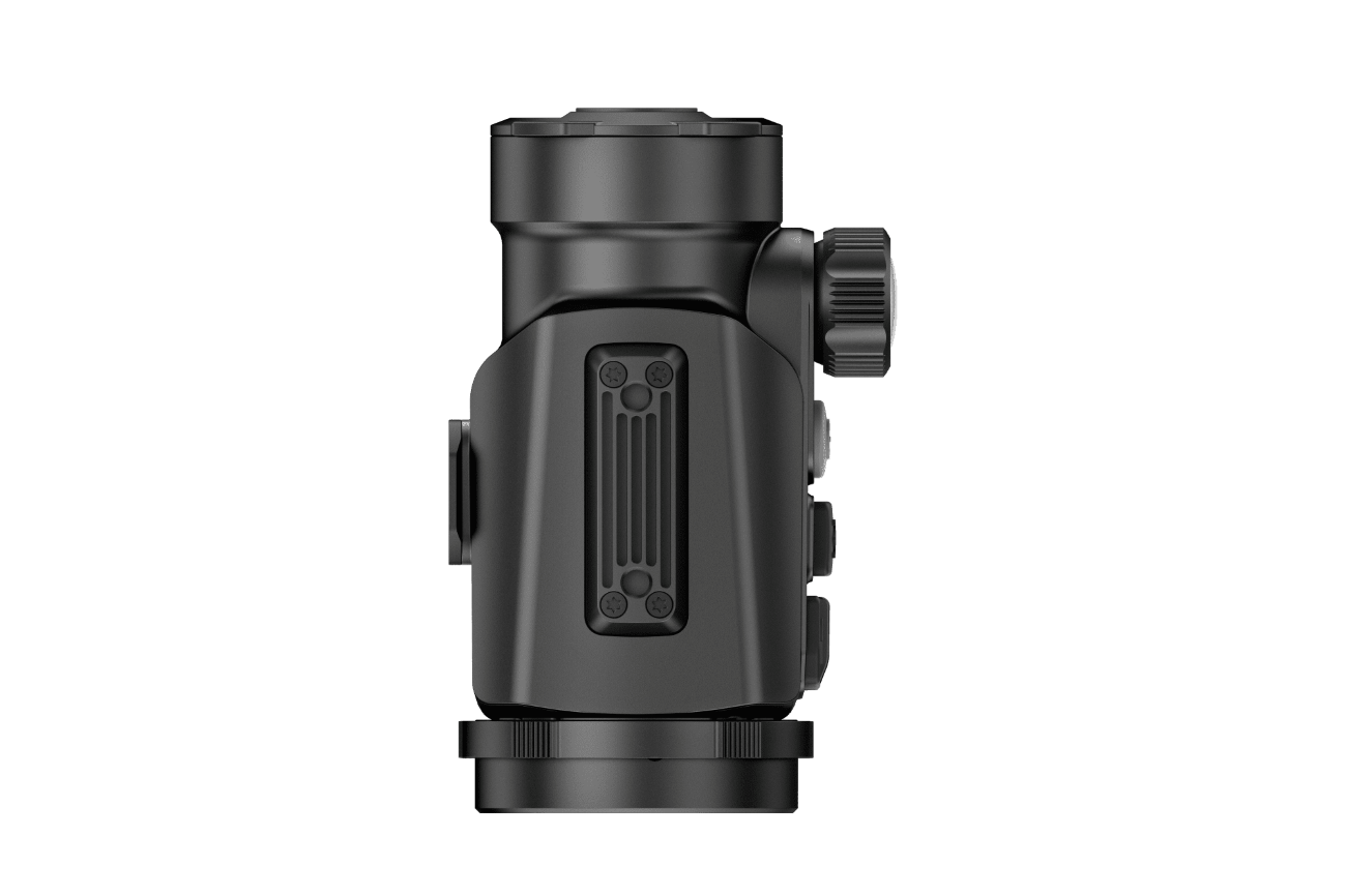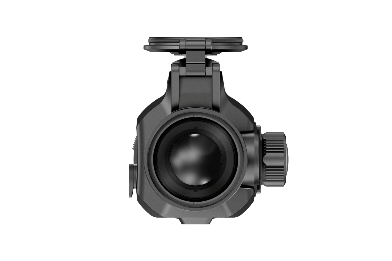 Clip-on način (pritrjevanje): 38 mm F1.0 leča, zaslon AMOLED 1920×1080, zaščita IP67, možnost uporabe kot monokular (z dodatnim okularjem), omogoča zaznavanje do 1950 m.