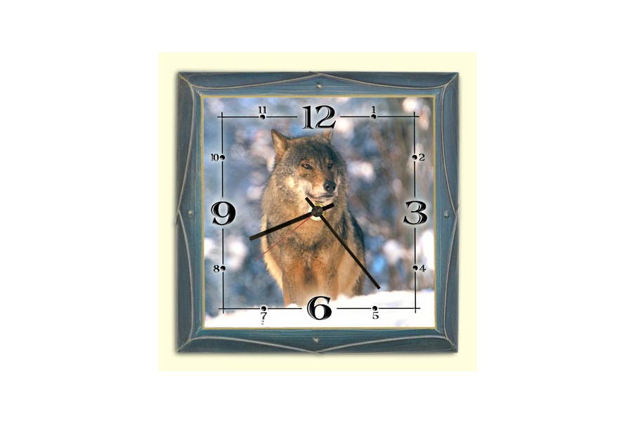 Stenska ura z motivom volka.