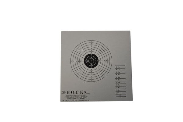 Tarča BOCK dimenzij 140 mm x 140 mm za streljanje z zračnim orožjem.